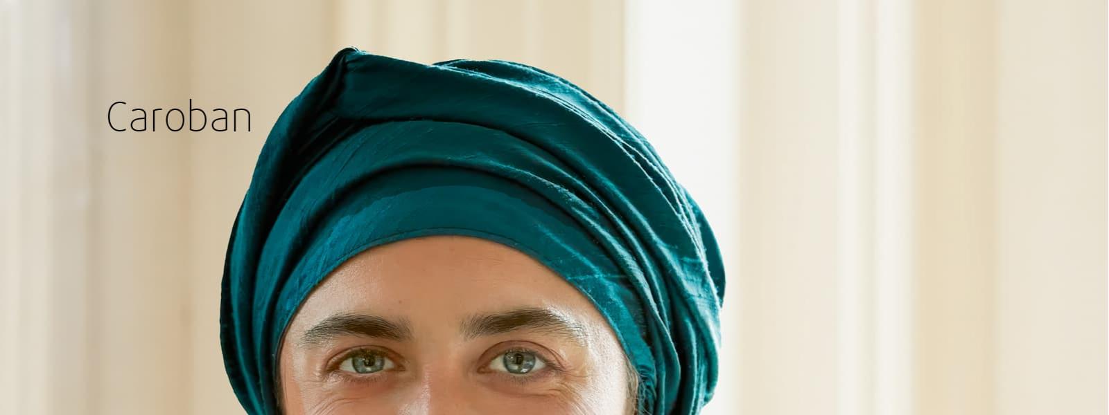 Der Caroban ist ein Turban mit einem fixen Kopfteil (Haube), der individuell auf Ihre Grösse angepasst wird. Zwei seitliche Bänder können Sie in unterschiedlichen Arten um den Kopf binden. Innen ist der Caroban mit feiner Baumwolle gefüttert. Aufgrund seiner Machart sitzt er absolut sicher auf dem Kopf und der Haaransatz ist vollständig bedeckt. Der Caroban ist eine praktische, einfach anzuziehende, stilvolle Kopfbedeckung.