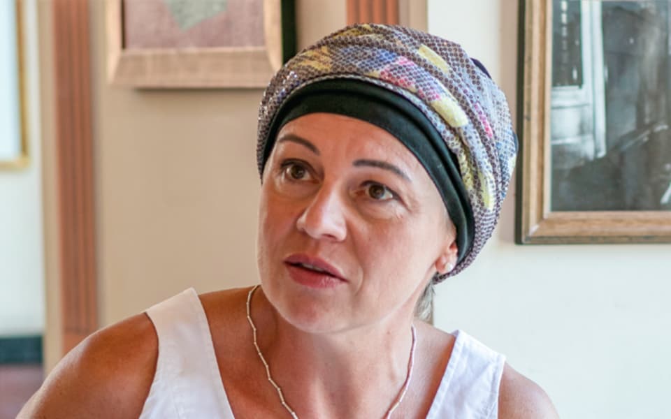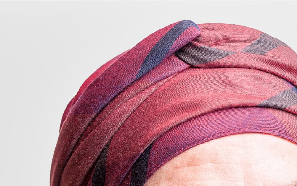 Der Caroban ist ein Turban mit einem fixen Kopfteil (Haube), der individuell auf Ihre Grösse angepasst wird. Zwei seitliche Bänder können Sie in unterschiedlichen Arten um den Kopf binden. Innen ist der Caroban mit feiner Baumwolle gefüttert. Aufgrund seiner Machart sitzt er absolut sicher auf dem Kopf und der Haaransatz ist vollständig bedeckt. Der Caroban ist eine praktische, einfach anzuziehende, stilvolle Kopfbedeckung.